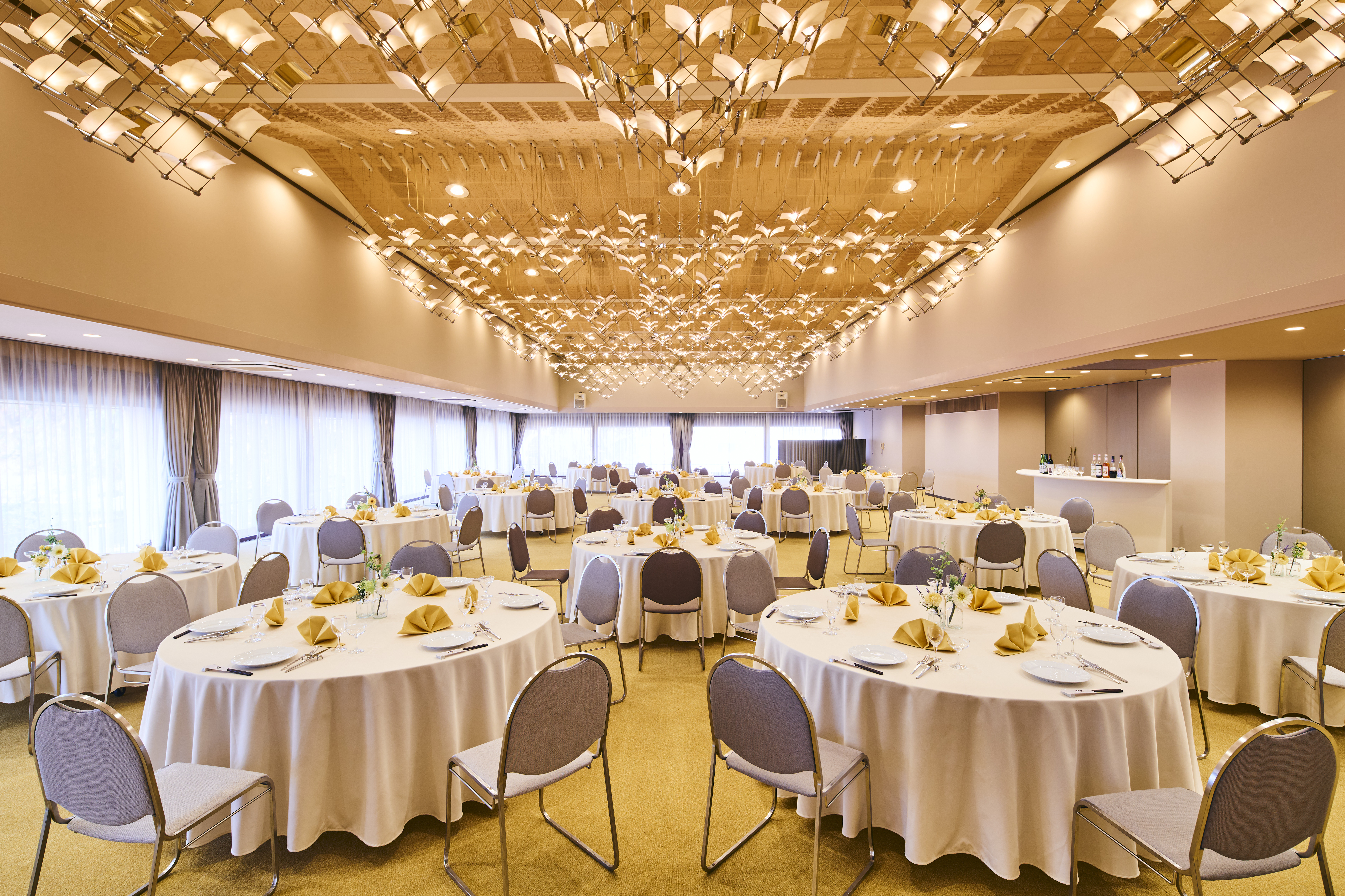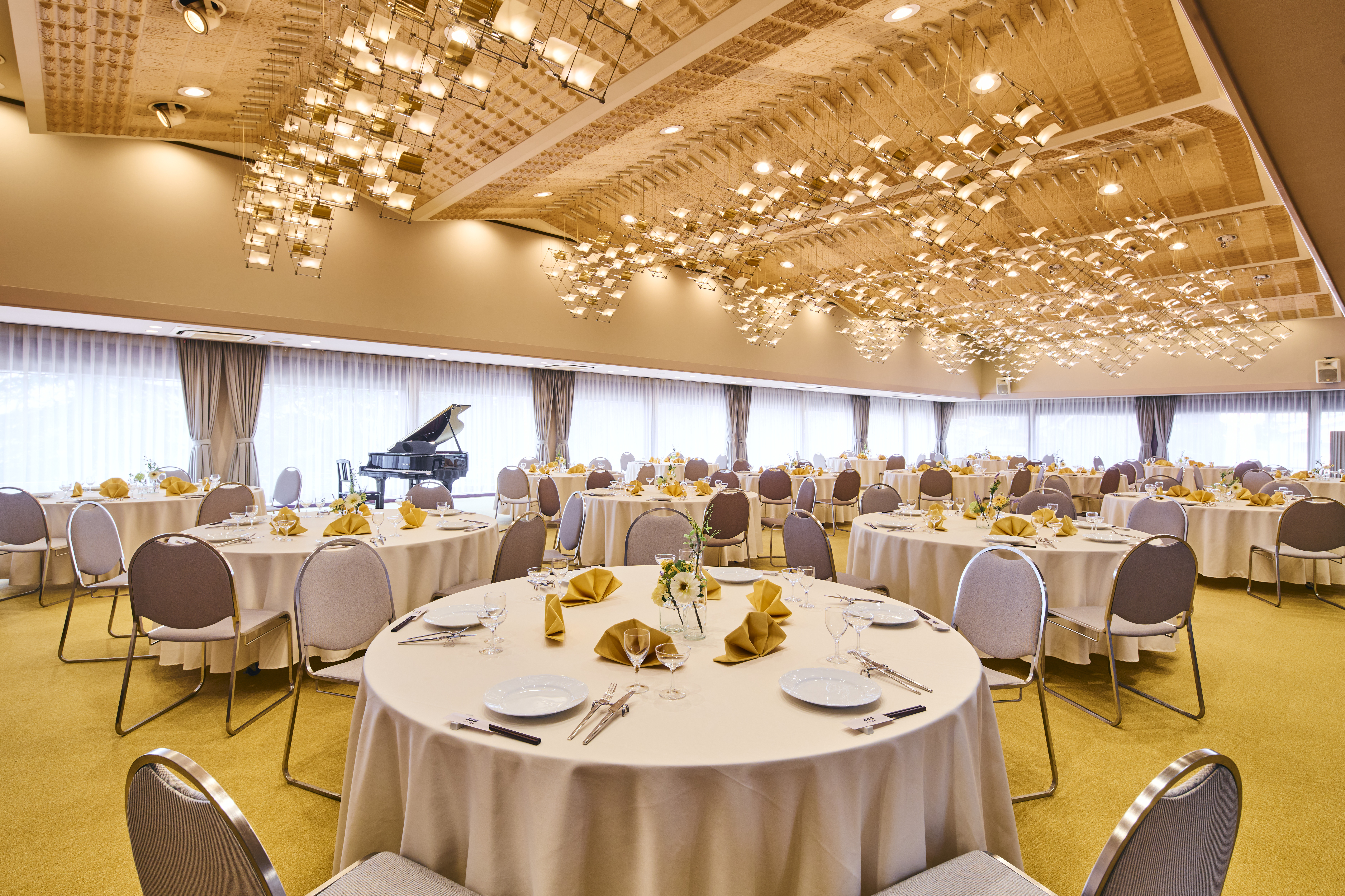 ご神木の大銀杏が由来のホール銀杏(いちょう)。銀杏は雄と雌がわかれていることから縁結びの葉としても信仰されています。披露宴や大きなご宴会を用途に様々な用途にご利用いただけます。
