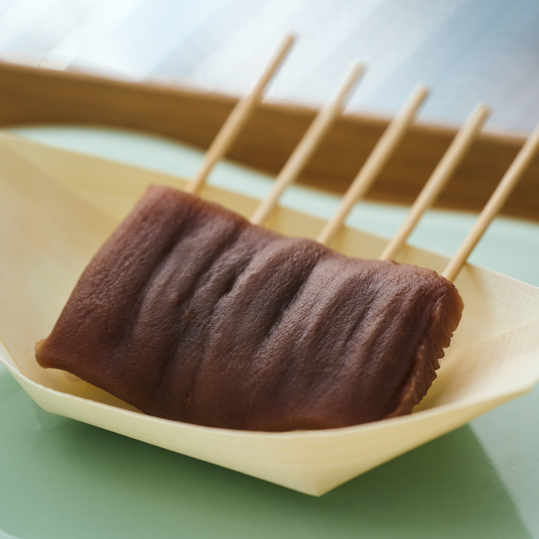 神社へお参りされた方、この場所を訪れたみんなに素敵なご縁とたくさんの笑顔を。そんな願いを込めた天晴レ団子。縁結びの神様のもとでお祓いされた五本の串に繋がるお団子をぜひ分け合ってお召し上がりください。